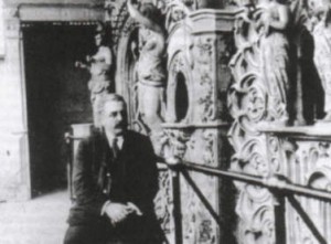 consideró como la primera película filmada en territorio español. Si hoy es la segunda, poco nos importa pues la importancia del hecho es que un administrativo del Ayuntamiento de Zaragoza llamado Eduardo Jimeno Correas se ha convertido en el realizador, operador, fotógrafo, y empresario más importante de la prehistoria del cine español. Nacido en 1870, este personaje innovador y moderno quedó prendado por el cine y decidió abrir en la Paseo de la Independencia el primer Salón de cine en Zaragoza y además de permitir a los zaragozanos de finales del siglo XIX contemplar las primeras películas que se rodaron en Francia, pasó a la acción y decidió filmar él mismo lo que ocurría a su alrededor. Para ello, como les decía, agarró la escalera y se colocó en ella frente a la puerta de la Basílica del Pilar a esperar que las gentes salieran de misa de doce. Y allí se montó y bien montada, las gentes se vieron sorprendidas y acaso intuyeron que estaban escribiendo un capítulo fundamental de la historia del cine español. Acabada la filmación, Eduardo Jimeno se marchó a un pequeño laboratorio que tenía en la Posada de las Almas y rebeló la cinta. La ciudad pronto conoció la realidad del fotógrafo subido a la escalera y dicen que fueron inmensas las filas de gentes que acudían a la sala del Paseo de la Independencia para verse salir de misa de doce. Y este acontecimiento es el que recuerda una escultura en la plaza Ariño, porque ya saben que en esta ciudad somos así de estrafalarios: si esto ocurre en la plaza del Pilar ponemos la escultura que lo recuerda en otro lugar… En fin, ya saben algún sensato responsable debería remediar esta majadería. Y como dato el gran protagonista murió el año 1947 en Madrid, ya como empresario de una barraca de feria y de salones de cine.
