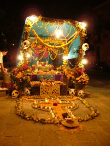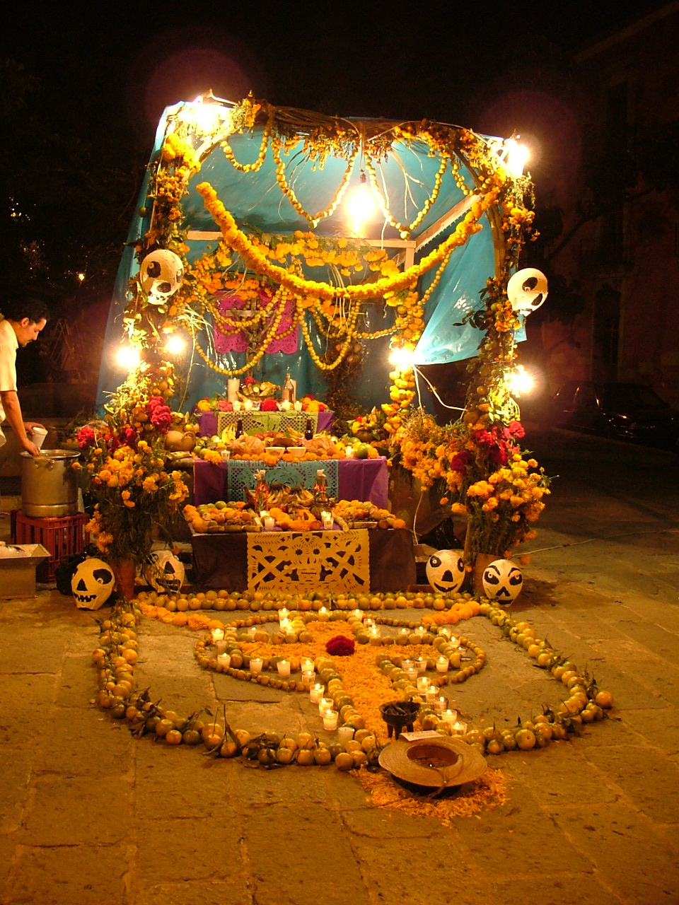 los vivos sí podemos ofrecer nuestras obras para que el difunto alcance la salvación. Ayer el calendario cristiano recordaba los santos, hoy recuerda los que no tienen esa condición pero van camino de la eternidad. Para ellos, sus familias han mantenido ritos y tradiciones desde hace siglos, que se han ido complicando con la superposición de culturas. Y si no les diré que en México hoy montan el altar de los muertos -como el que pueden ver- donde ponen las cenizas de sus familiares y las comidas que más les gustaban, puesto que las antiguas religiones aztecas decían que en la primera luna llena de noviembre los dioses dejaban regresar a la tierra a los muertos para estar con sus familias. Por cierto, esta fiesta de los fieles difuntos mejicana ha sido considerada como Patrimonio de la Humanidad por la UNESCO. Como ven las cosas no cambian tanto ni con el paso del tiempo ni con la distancia. Y si no que se lo digan a los celtas que celebraban la víspera santa, la noche del 31 de octubre, disfrazándose de fantasmas para ahuyentar a los espíritus. Es la noche que algunas culturas conocen como la noche de las brujas y los americanos como Halloween.