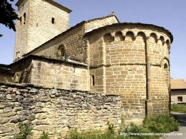 La iglesia se edificó en el siglo XII, en el primer tercio de ese momento y durante el reinado de Alfonso el Batallador, teniendo gran importancia puesto que es el mejor ejemplo que tenemos de la penetración del románico jaqués hacia el oriente. Su contemplación hoy está condicionada por la torre que se le añadió y que tiene un claro aire defensivo, propio para una sociedad que vivió en tiempos de frontera y que luego contribuyó a custodiar la paz en este camino del Gállego.